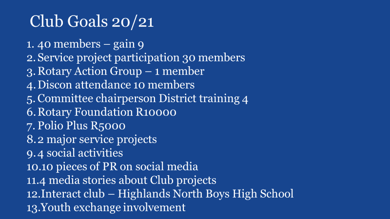 We combined our monthly business meeting with Club Assembly and the main take-away from this was to review and highlight the Club Goals we have set for the year ahead.